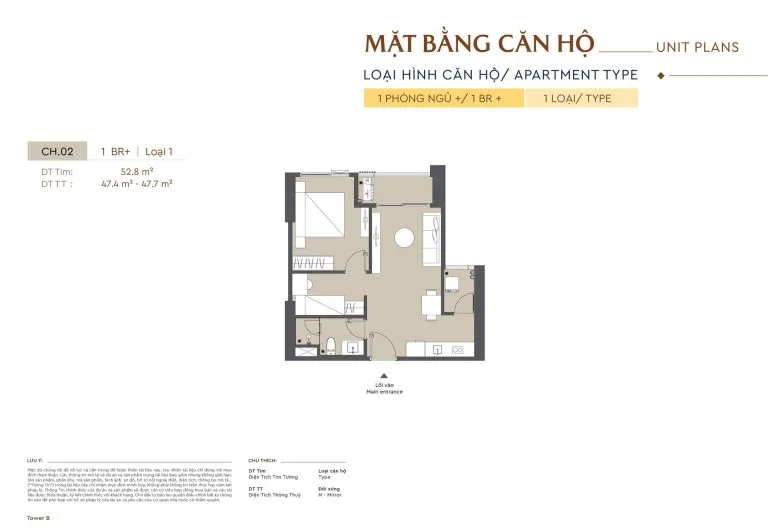 47m² – 53m²Thiết kế thông minh, tối ưu
